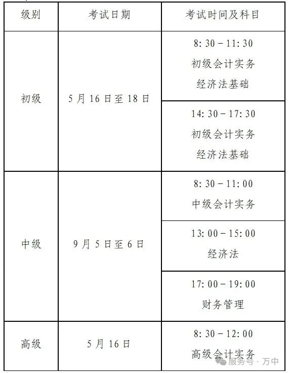 3.2026年5月16日至18日组织初级会计资格考试,5月16日组织高级会计资格考试。